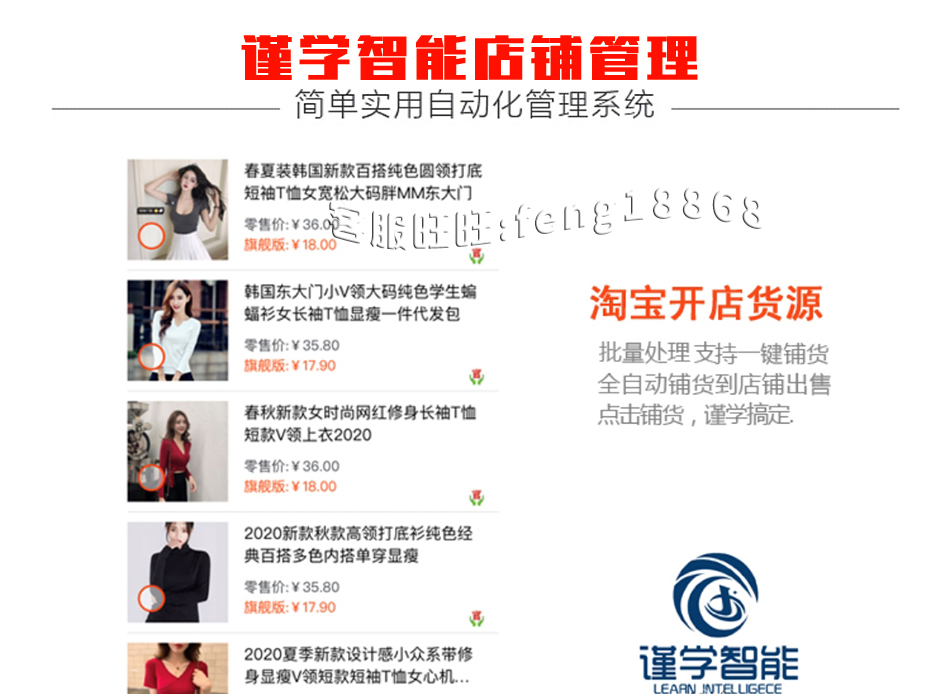 答:谨学开店软件的账户需要联系本站客服注册购买的,购买之后,并发放授权证书!立即可以享受开店软件海量货源,一键铺货,自动发货,等强大后台功能!