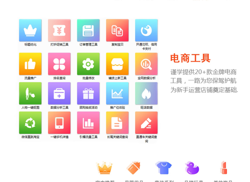 答:谨学开店软件,是目前淘宝网一款专业为想在网络创业的 网店新手卖家,提供网店货源,网店管理,一站式全程一条龙服务能帮助各位新手卖家快速开店,提供货源的一款智能人性化淘宝店铺管理软件!
