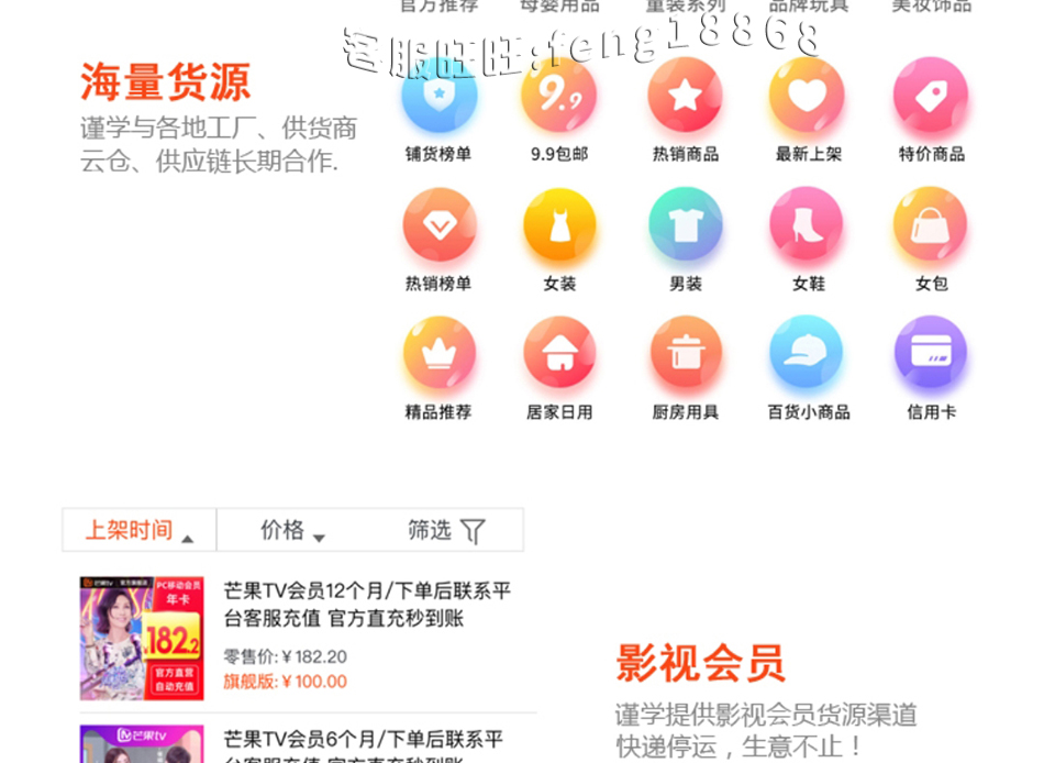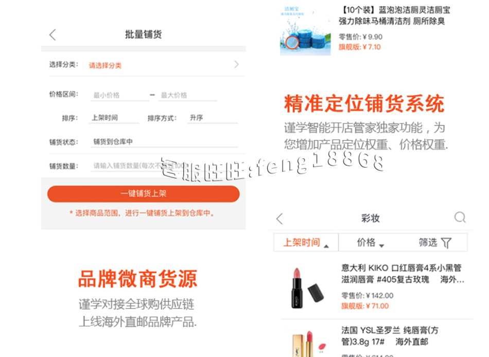 答:购买谨学分销开店软件之后,您可以销售里面的商品赚钱,每件商品的利润有几十元至上百元左右,售价自己定,利润自己掌控,给代理的价格都是厂家一手价,保证代理商的利润空间! 10.我是新手,我什么都不会,我可以开店么? 答:不管您是不是新手,我们承诺,包教包会,满意为止的!任何一位卖家都是从新手,从零做起的,所以说,只要您想做,我们免费教您,是不是新手都没有关系的。 11.我开店,刚开始没有信誉,有人买么? 答.任何人做网店,都是从零开始的,都是从没有信誉开始做起的,就算想做的皇冠,金冠卖家,也都是从零开始,开网店,不是看信誉,是看方法,看服务,然后好的服务给客户,客户自然会购买! 12.购买你们软件之后,使用时间是多久? 答:只要您付费购买之后,终身免费使用! 13.代理软件之后,除了软件之外,你们还提供服务么? 答:一次代理,终身售后,终身免费,我们不仅卖的是软件,我们卖的更是服务!手把手教您开店,提供开店的方法,耐心指导,贴心售后,让每一位新手网店创业,赢在起跑线上! 喜讯:开通软件,收货评后即送超级装修软件+全套高级运营课程 特别提示: 软件一旦激活开通帐号,是不支持退款的,请确定好了,联系客服购买开通,感谢您的支持 |