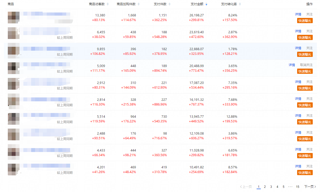 无论你是做爆款、动销还是上新型店铺模式,关注活动商品的数据可以为你之后调整商品重心,有效发现潜力新品,同时为你下一个活动到来之前推广什么产品做一个有力的依据。 推广 环比往期活动数据,本活动推广版块数据。