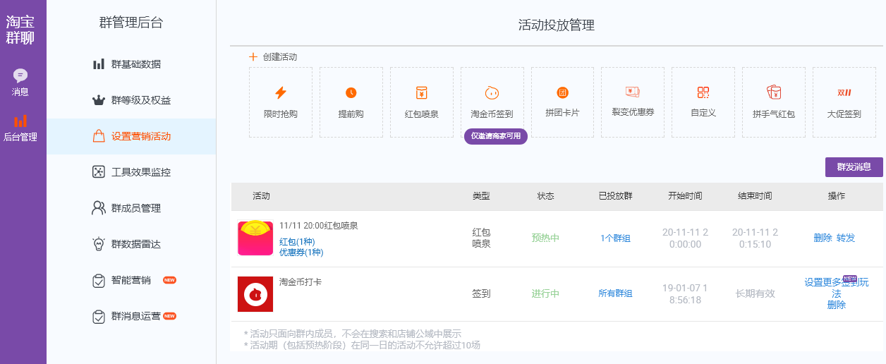 1.站内微淘:活动信息置顶,每日不间断种草新品/潜力款,引导提前加购以及活动玩法触达